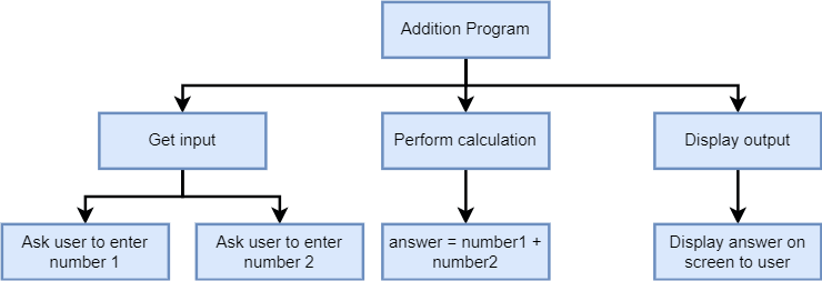 A structure diagram must be read top to bottom, and left to right. So the order of the processes is important. Let's look at an example;